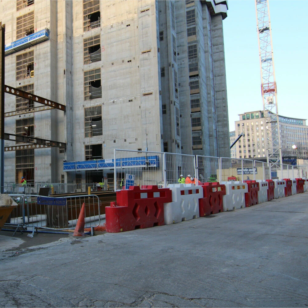 This newly designed water filled heavy duty traffic separator is unique in the way it?s been designed and can rotate a full 90 degrees enabling contractors to box off projects providing added security. The Bison Barrier comes in standard red/white colours and is only 35kg when empty and 420kg when filled. The Bison barrier can be connected together forming a complete barrier between the public and free flowing traffic. Its unique design includes Chapter 8 compliant hi-vis strip as standard and can be used in conjunction with a selection of different fence or hoarding panels.