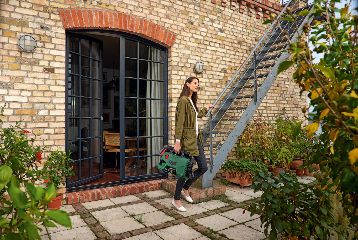 The Bosch EasyAquatak 110 Electric Pressure Washer has a compact lightweight design with accessory storage for easy manoeuvrability. This convenient tool can tackle small to medium sizes cleaning tasks.