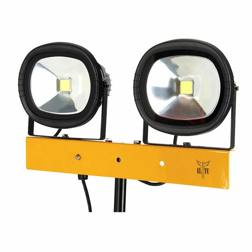 The Elite LED 35W Twin Head Tripod Site Light features 2 x LED light heads offering 5500 lumens of light output each, fitted to a Tripod Stand with swing legs that extends from 1.5 to 2.4 metres.