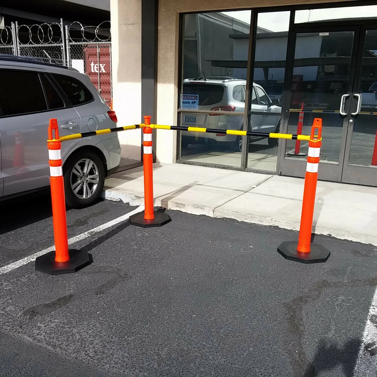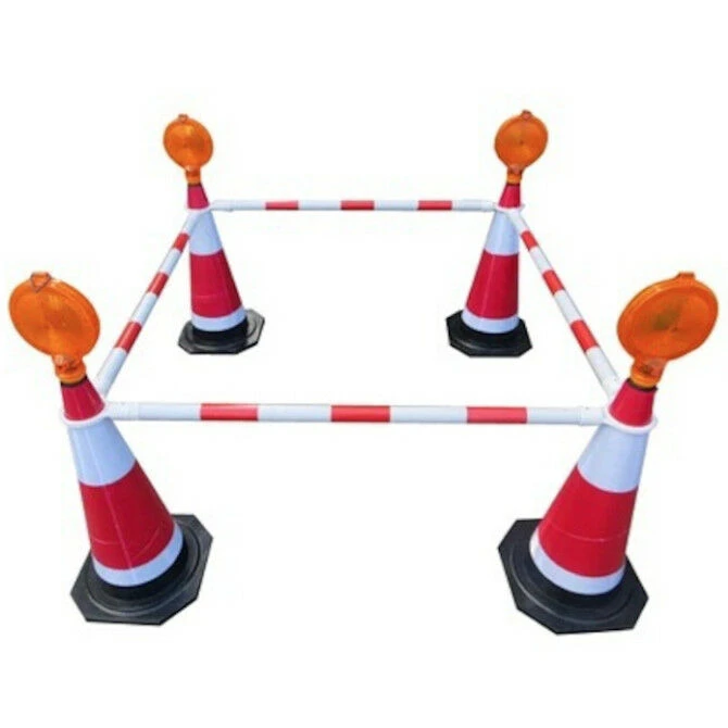 This newly designed and innovative product has been designed to fit over two traffic cones, to provide quick and effective demarcation of sites. The Cone Bars have been designed to be lightweight for ease of handling and assembly, and use a simple twist lock to extend and secure the bars. Each Extendable Cone Bar has been manufactured with the use of high visibility tape. The Cone bars have a securing hoop at each end 80mm in diameter enabling them to be used with almost any cone on the market. They have a standard width of 1300mm but can be extended to a Maximum width of 2220mm based on the central point of each securing hoop.