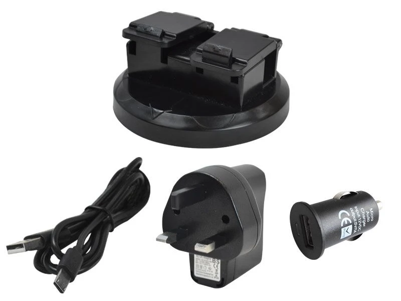 Supplied with a detachable magnetic stand, a 240V mains charger and 12V car charger.