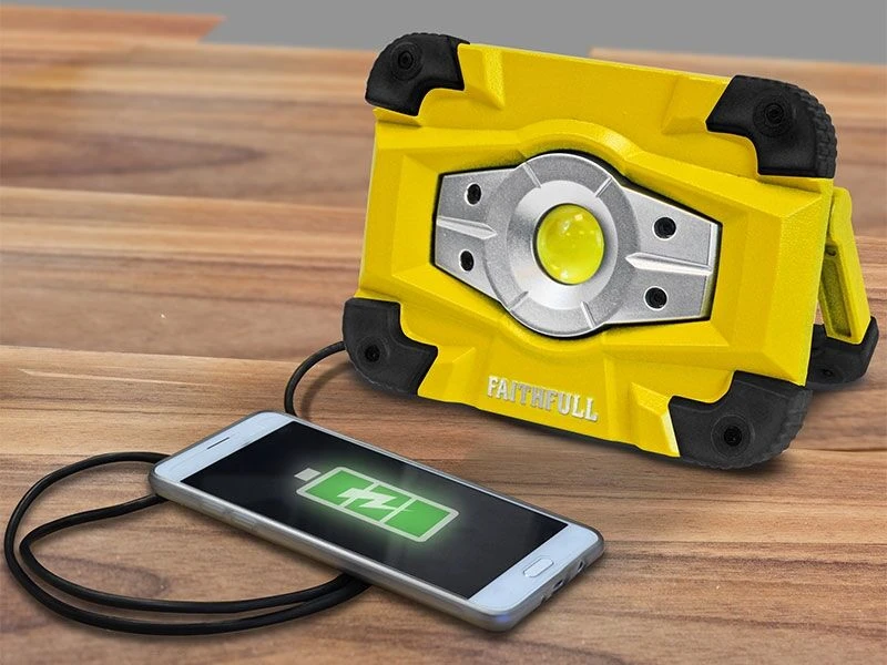 The Faithfull Rechargeable Work Light is fitted with an energy efficient and incredibly robust LED producing 800 lumens of light output. Its compact size and heavy-duty metal case is drop resistant up to 2m, making this unit ideal for tough working environments. Fitted with a folding handle for easy, space saving storage.
