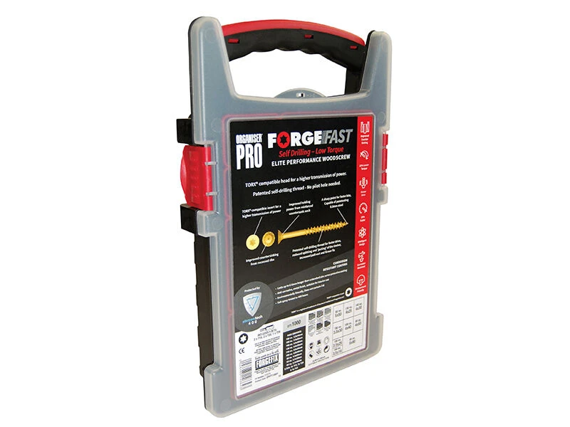 This ForgeFix ForgeFast Torx Compatible Wood Screw Organiser contains a selection of the most popular sizes. With a universally accepted, Torx compatible drive. Their recessed ribs provide improved countersinking and reduced surface dust, and their reinforced countersunk necks improve holding power.