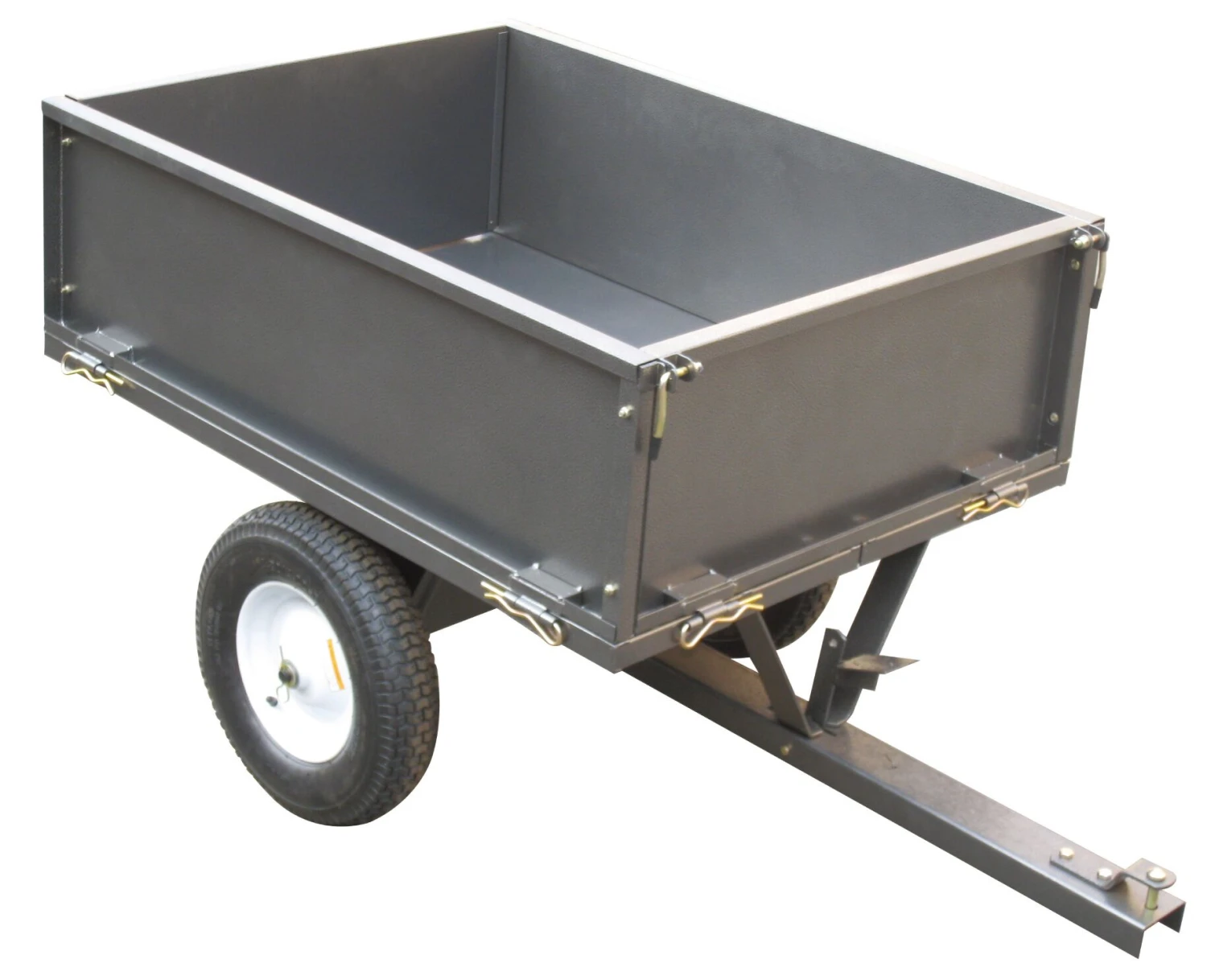 Further key features include removable sides for straightforward loading; ball-bearing wheel-mounts for smooth operation; and a universal hitch-pin that facilitates use with pretty much any make or model of garden-tractor.
