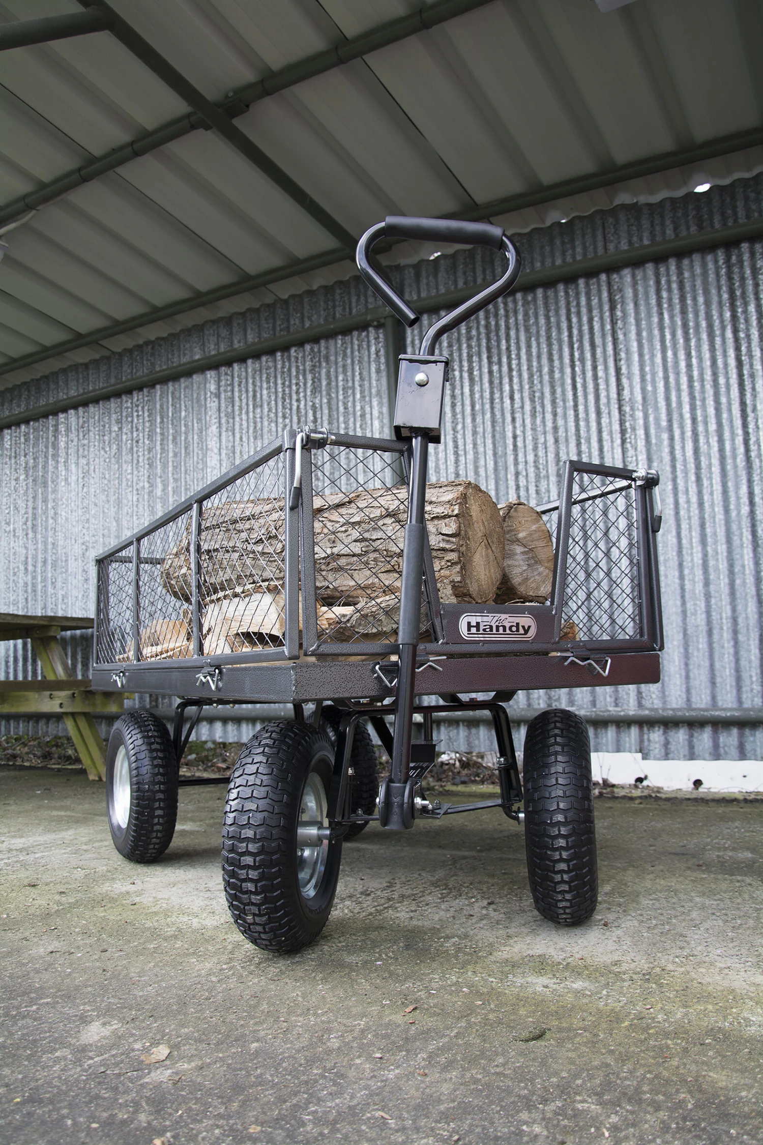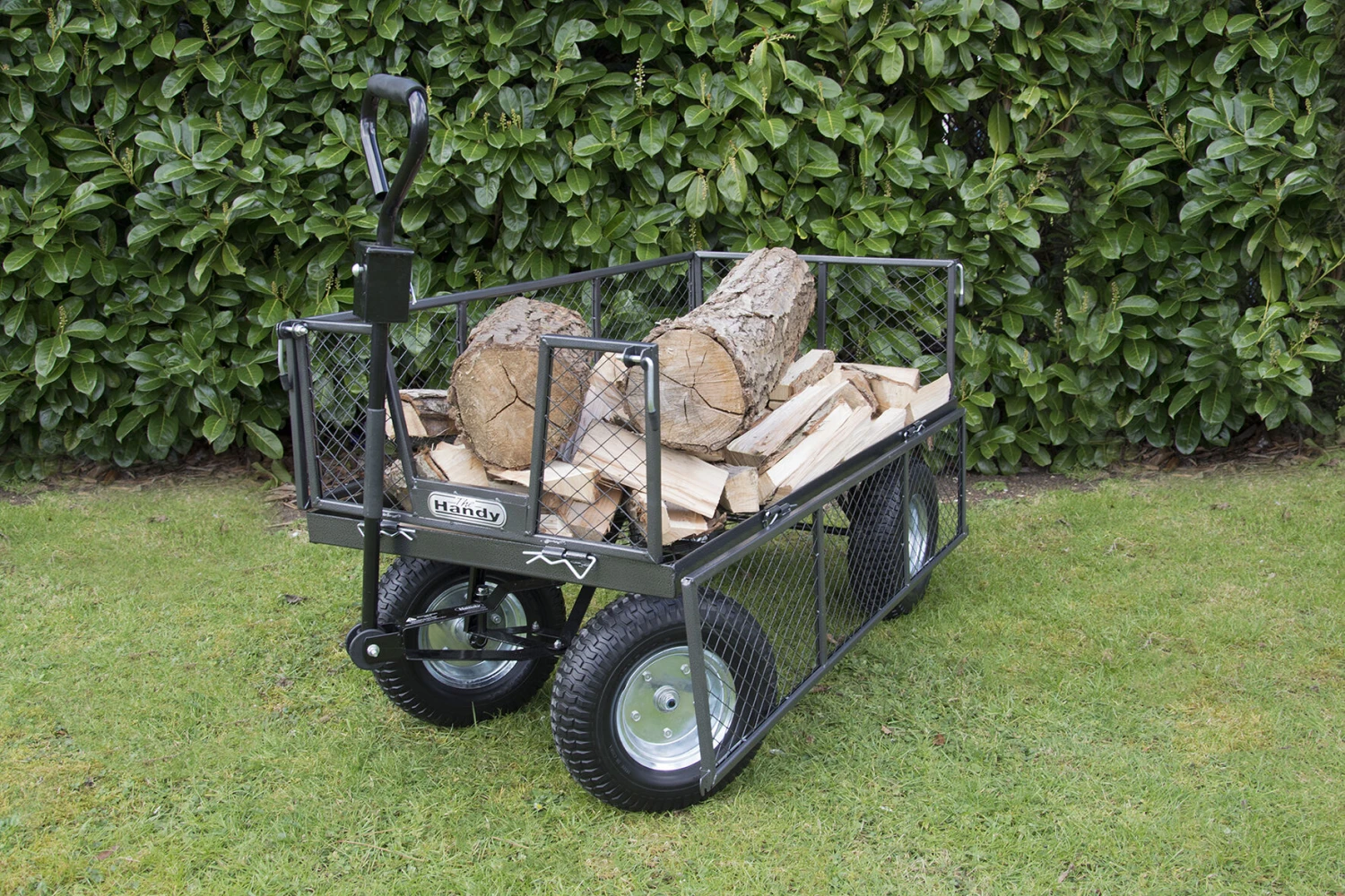 Enjoy a huge 350kg load-capacity, rugged build-quality and easy manoeuvrability with the Handy THLGT Large Garden-Trolley! It can be pushed, pulled or tractor-towed; and it features drop-down sides for ease of use.