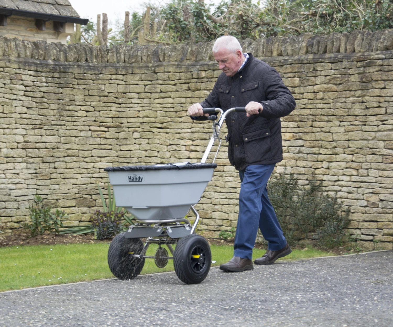 Get rid of ice and keep your drive and walkways safe this winter with the Handy THSS100 Salt Spreader!