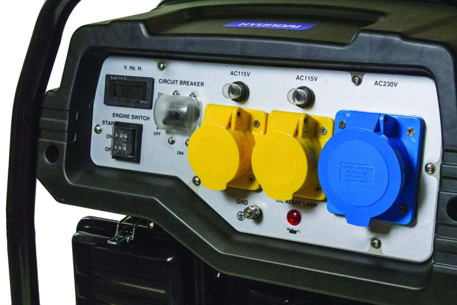 Fitted with 2x 115v 16a & 1x 230v 32a sockets to end facing control panel, to minimise damage to sockets when wheeling generator through narrow gaps and doorways. Suitable for industrial and home use the HY9000LEK-2 is a highly versatile open frame generator ideal for powering power tools, compressors, welders, lighting rigs, garages, mobile workshops or sensitive home equipment such as laptops, sound systems, TV’s….etc. With low service and maintenance requirements, the HY9000LEK-2 is an incredibly user-friendly, and has full Hyundai UK parts back up.