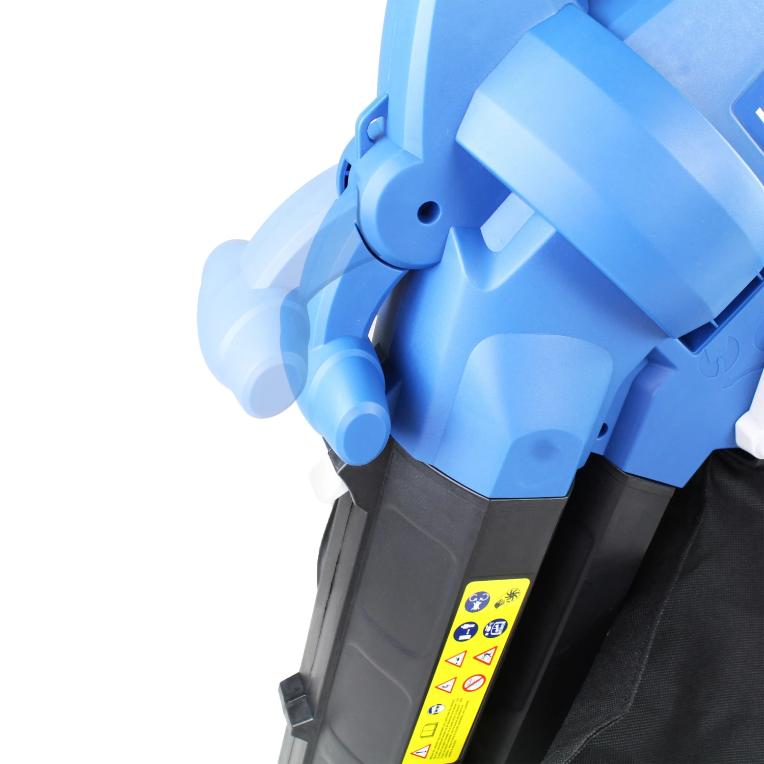 Weighing only 3.3kg the HYBV3000E well balanced design is easy to transport and maneuver using the single over shoulder support harness providing a comfortable user experience during extensive use. The spacious 45 litre collection bag offers ample room for long periods of use. Foliage and grass are volumised into 1/10th of its original size by its mulching shredding facility that can mulch leaves and grass.