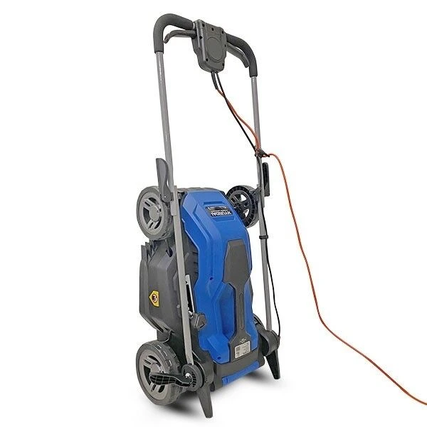 The handles are adjustable for height and also fold down over the main power unit, which makes this compact lawn mower easy to carry and transport in the boot of your car. The HYM3800E can also be stored upright saving floor space when stored in a garden shed and garage.