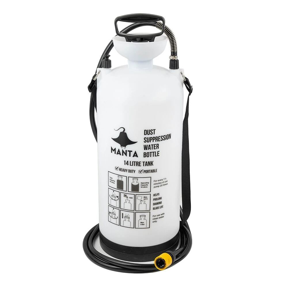 The Manta Dust Suppression Water Bottle is easy to use and robust. Used on site for suppressing dust created during drilling, cutting, and grinding applications.