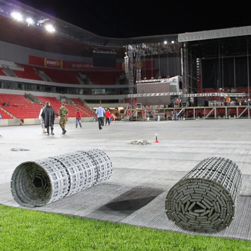 PortaPath is the most economical turf and surface protection system that is perfect for any event whatever the size. From a football stadium to small marquee, the surface protection system will protect turf and prevent soil compaction whilst providing an anti-slip surface. An excellent all-weather, all year-round material providing an innovative and reliable alternative to traditional flooring systems. It?s durable, lightweight, attractive and affordable. Designed with an integral ?living hinge? unique to PortaPath, this gives the system strength when locked together, while the innovative design also allows for quick disconnection.