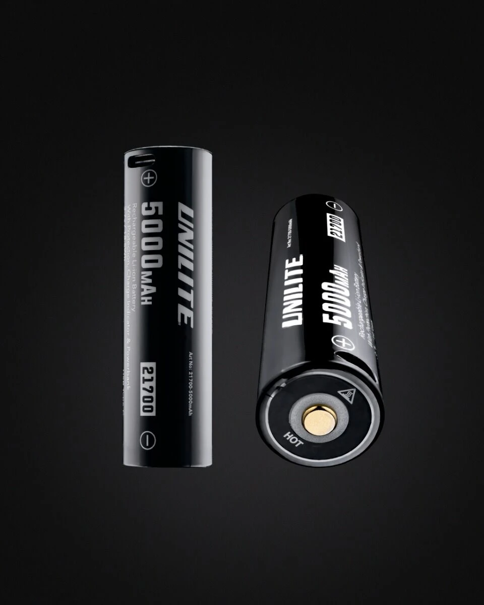 Spare or replacement Rechargeable 3.7v 5000mAh 21700 Li-Ion Battery with USB-C Charge Port included. For use with Unilite SLR-1450 Compact Folding Work Light.