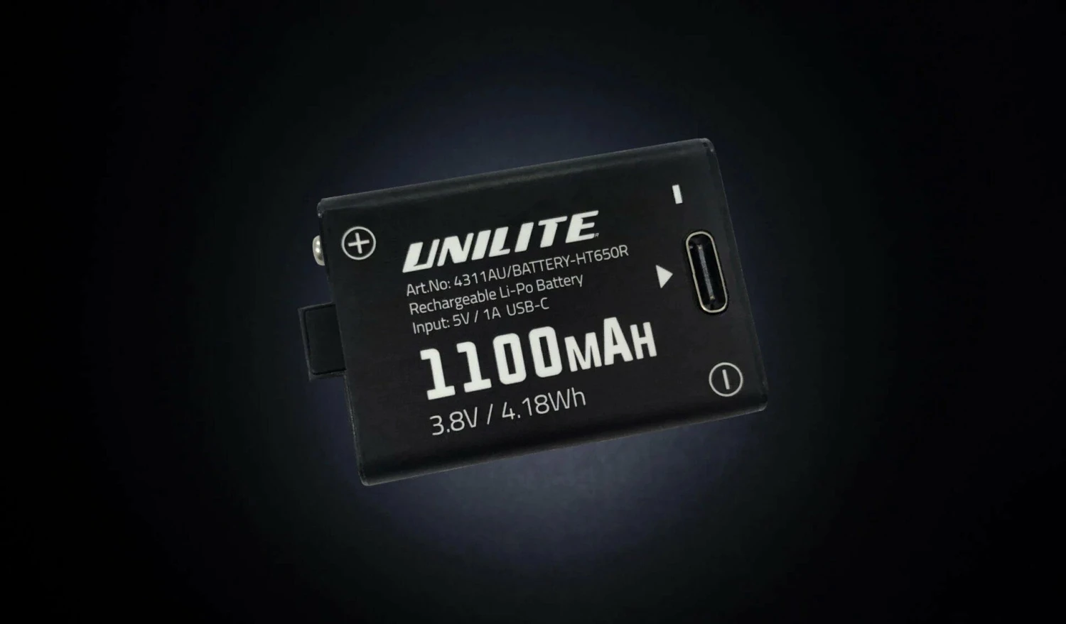 Spare or replacement Rechargeable 3.8v 1100mAh Li-po Battery. For use with Unilite HT-650R Head Torch.